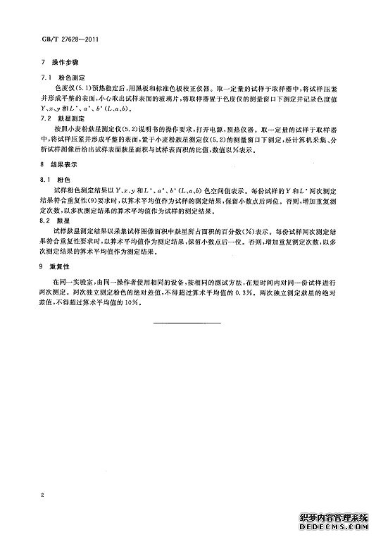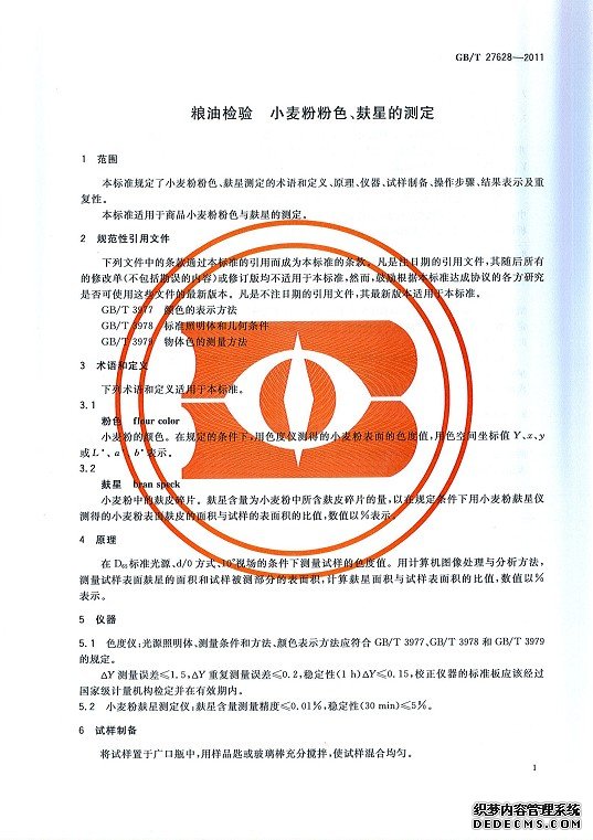 GB/T27628-2011糧油檢驗 小麥粉 粉色 麩星測定